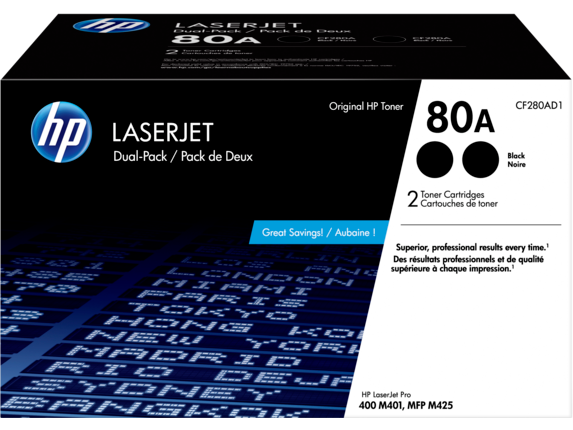 HP 80A 2-pack Black Original LaserJet Toner Cartridges, CF280AD1