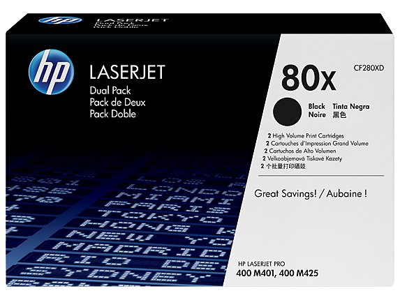 HP 80X 2-pack High Yield Black Original LaserJet Toner Cartridges, CF280XD