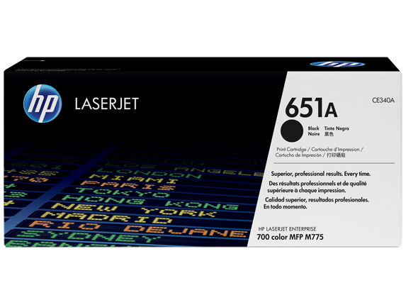 HP 651A Black Original LaserJet Toner Cartridge, CE340A