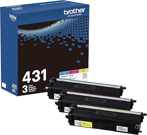 Brother Genuine standard-yield color toner cartridge three pack TN431 3pk: contains one cartridge Each of Cyan, Magenta and Yellow toner that provides professional laser Print quality for up to 1, 800 pages per cartridge. (1)